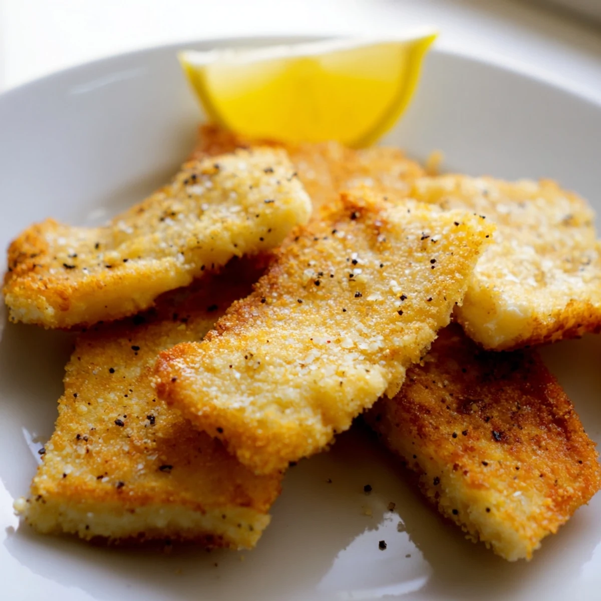 - Spread flour on a plate, season with black pepper, then dredge each slice and shake off excess for an even layer