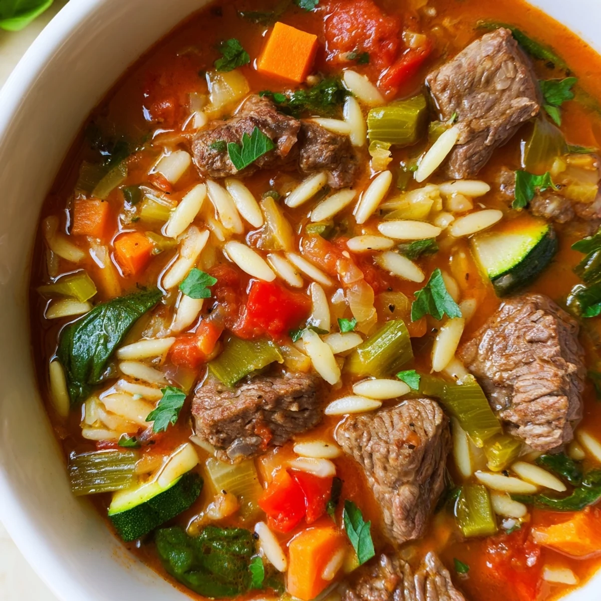 The first time I made this soup was on a particularly gray Sunday when the house felt too quiet and I needed something that would fill the air with warmth. I had picked up stew meat from the butcher without a real plan, and a bag of mixed vegetables from the farmers market that needed using. As the beef started searing in the pot, that rich caramelized scent drifted through every room and suddenly the day felt different. By the time I added the orzo and watched it plump up in the broth, I knew this was going to be one of those recipes that lives in regular rotation.